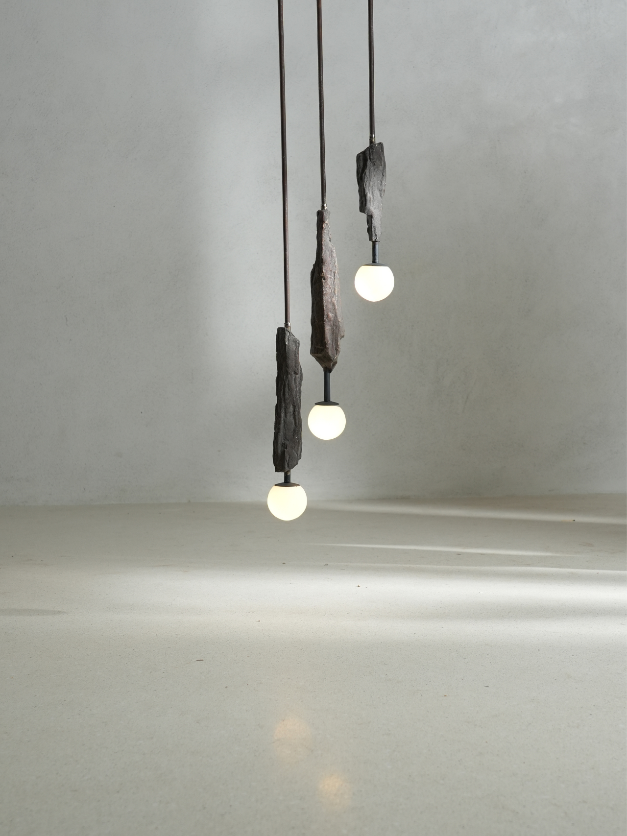 Hanging in space, it feels like a fragment of light caught mid-drift, never fully still.