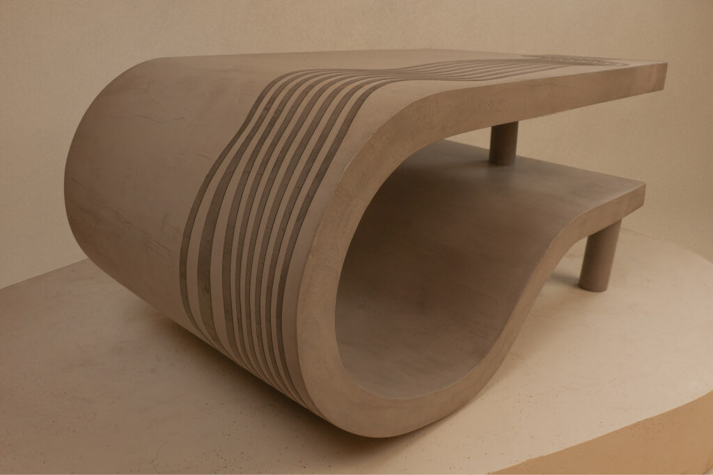 The Flow table is a beautifully curved coffee table that brings a sense of movement to your living space. The debossed prints on the muted grey concrete surface create a tactile experience, inviting touch and interaction. The unique design of FlowTable, with its wave-like curvature and dynamic prints, adds a touch of elegance and fluidity to any room. It’s more than just a coffee table; it’s a statement piece thatcombines form, function, and sensory delight.