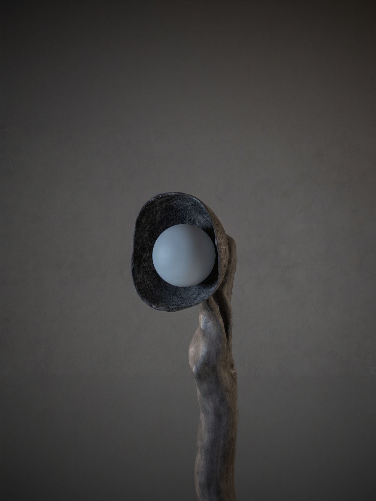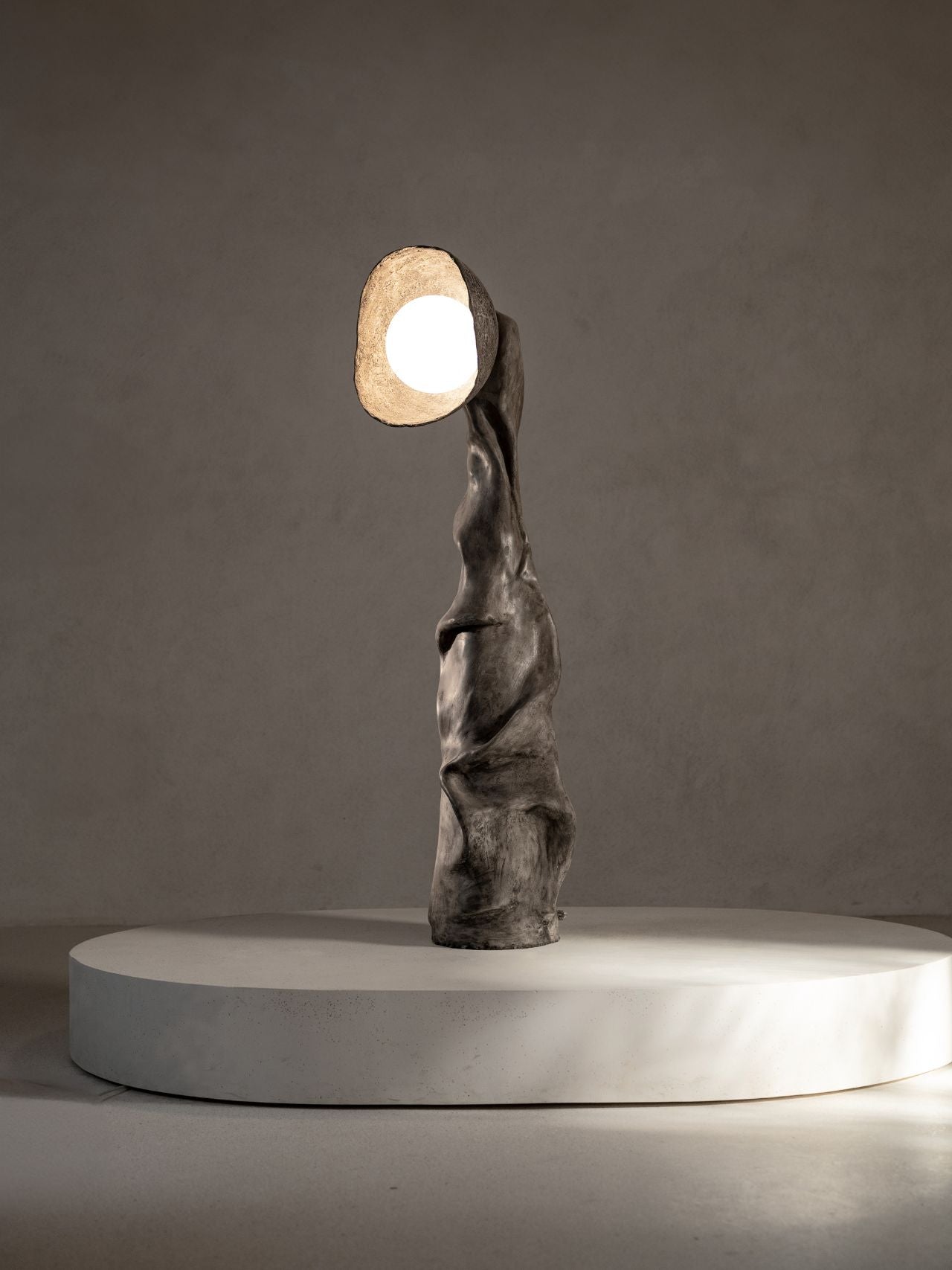 The Lume Lamp is a floor lamp crafted meticulously by hand from concrete, showcasing a blend of natural elegance and robust craftsmanship. Featuring a light source nestled within a sculpted cup, illuminating the space in a warm, inviting glow. Inspired by the organic roots of trees, its fluid, natural linescreate a soft visual aesthetic that enhances any interior. This lamp is not just a source of light buta symbol of artisanal excellence and timeless beauty, making it an ideal addition to any living space seeking both functionality and artistic allure.