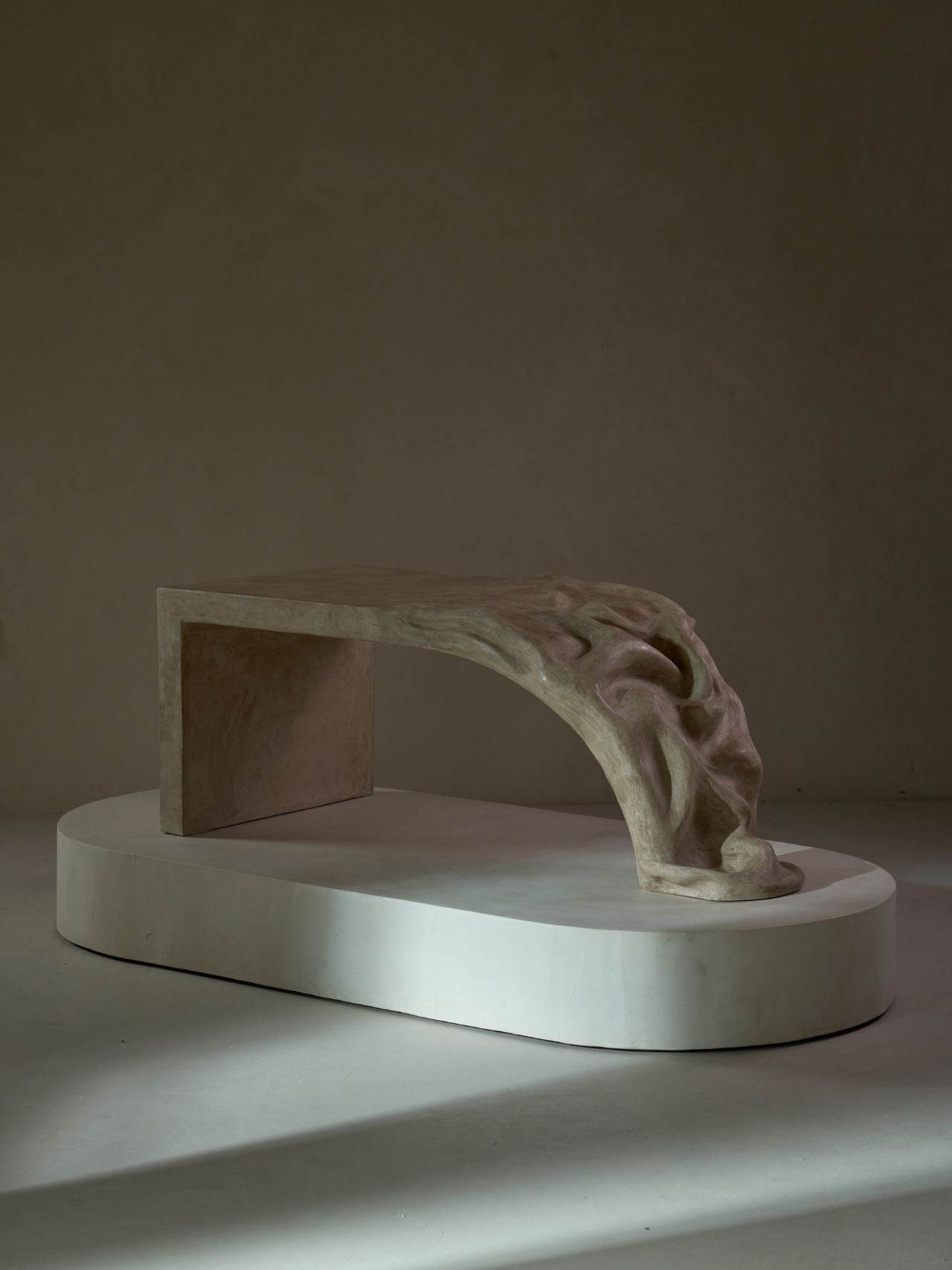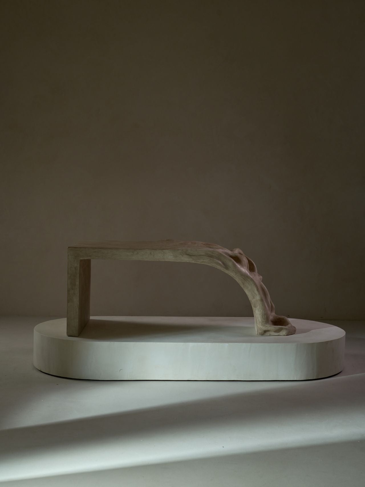 A striking blend of precision and organic flow, the Morph Coffee table embodies the duality of structure and fluidity. Beginning with a straight, sturdy form, the console gradually transitions into a fluidic concrete structure in its second half, as though it’s in the process of transforming. The interplay between its rigid foundation and sculptural, evolving silhouette invites contemplation of balance and transformation.