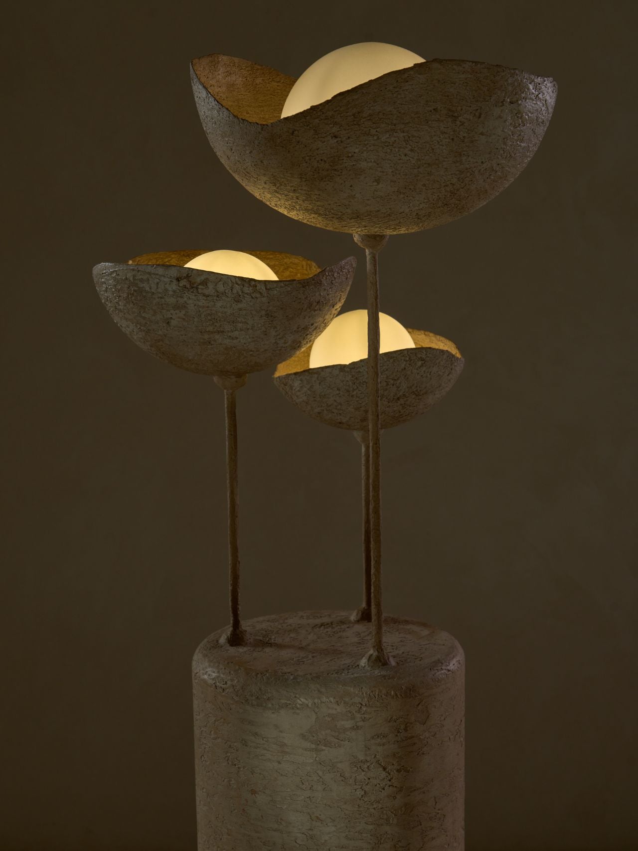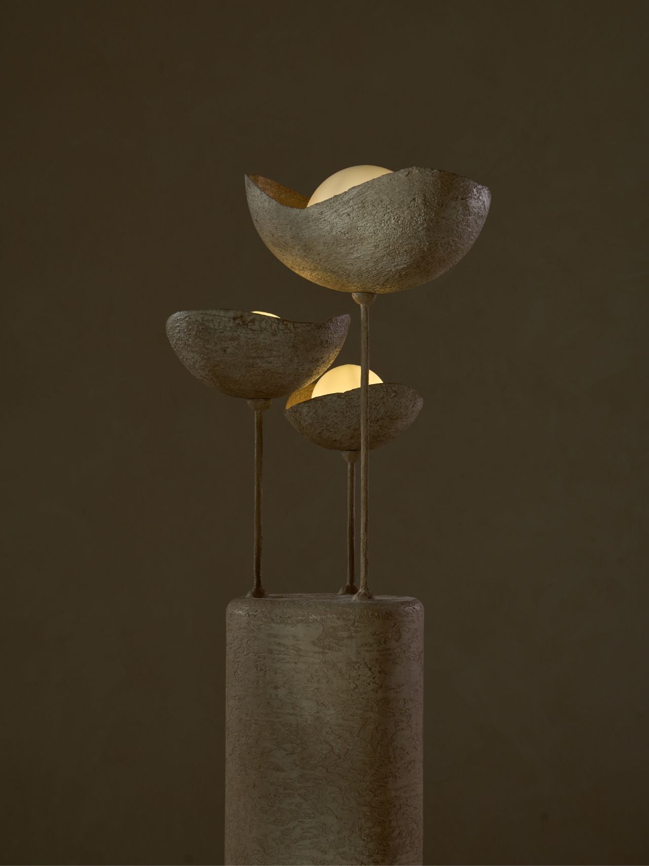 The Light is a captivating blend of organic design and modern functionality. Featuring three sculpted bowls with lights at varying heights, this ceiling fixture embodies the wabi-sabi philosophy of beauty in imperfection. Crafted from beige textured concrete, the lights offer a serene and natural aesthetic. The varied heights create a dynamic, cascading effect, adding depth and visual interest to any room.